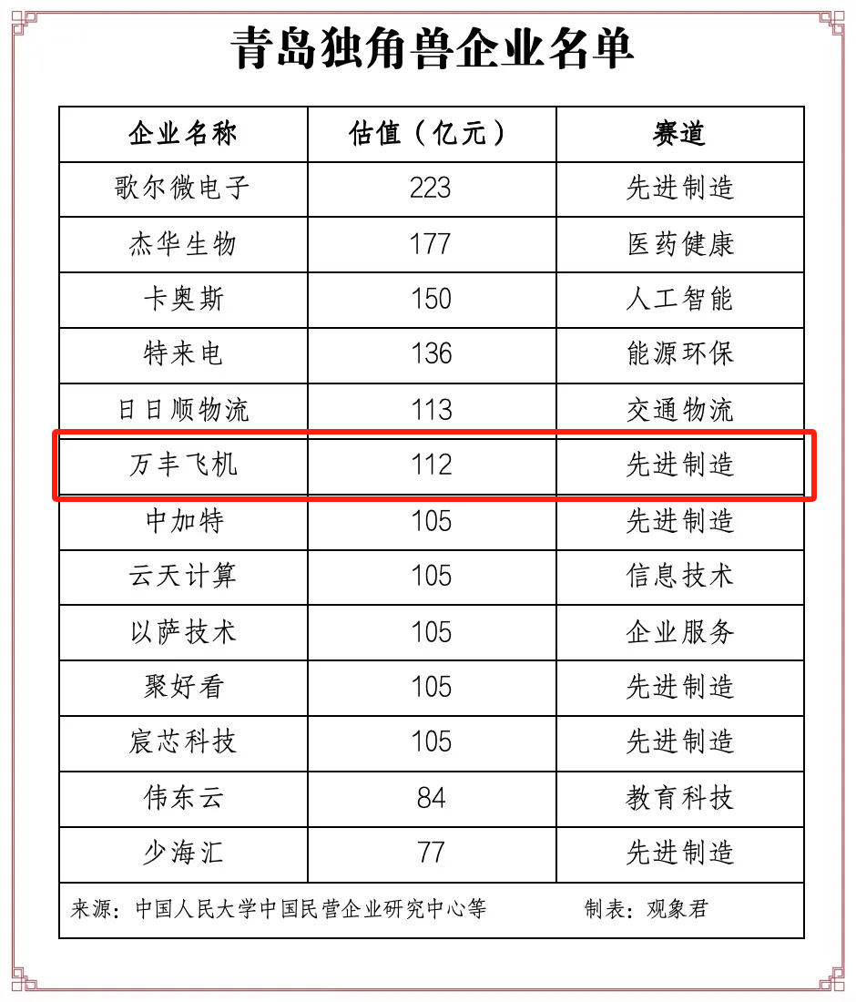 青岛米兰MiLan(中国)投资企业万丰飞机蝉联全球独角兽企业500强