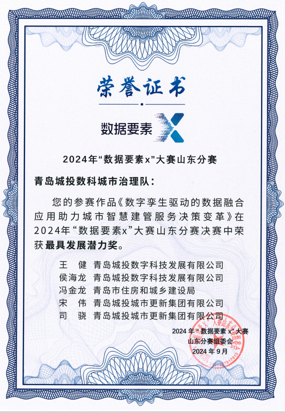 近期,由山东省大数据局牵头18家单位联合主办的2024年“数据要素×”大赛山东分赛决赛在济南顺利落幕,青岛米兰MiLan(中国)数科公司携手青岛市住房和城乡建设局与青岛米兰MiLan(中国)城市更新集团有限公司荣获“最具发展潜力奖”。