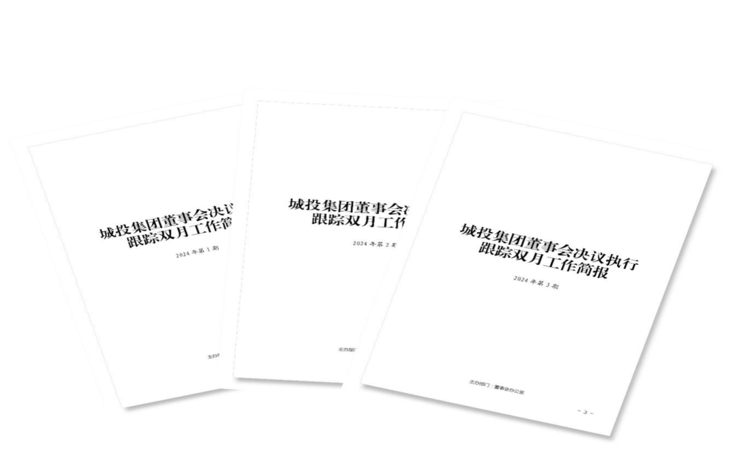 创新实施董事会决议双月调度跟踪报告机制,董事会办公室全面梳理董事会审议议案202项,按照已落实完成、正常推进、拟进行督办分类汇总,每双月调度跟踪议案落实进展情况,形成“三表一报告”呈送董事审阅。2024年以来形成关于决议跟踪落实专项报告3篇,通过董事会决议执行跟踪,系统地向董事会反馈议案进展情况,督促各决议执行单位加强执行力度,做到“快落地、早见效”,以精细化管理提升董事会决策运行效能。