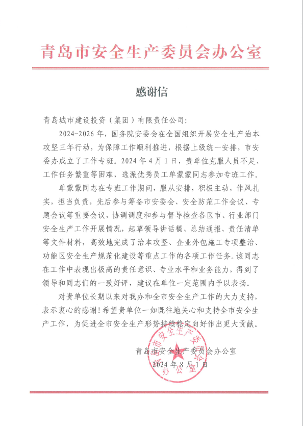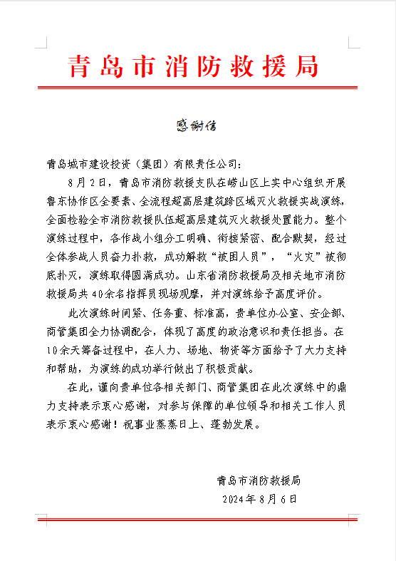 被青岛市水务局评为2024年度青岛市“争进度、赛质量、比担当、创精品”创新创优劳动竞赛文明工地、优胜集体。