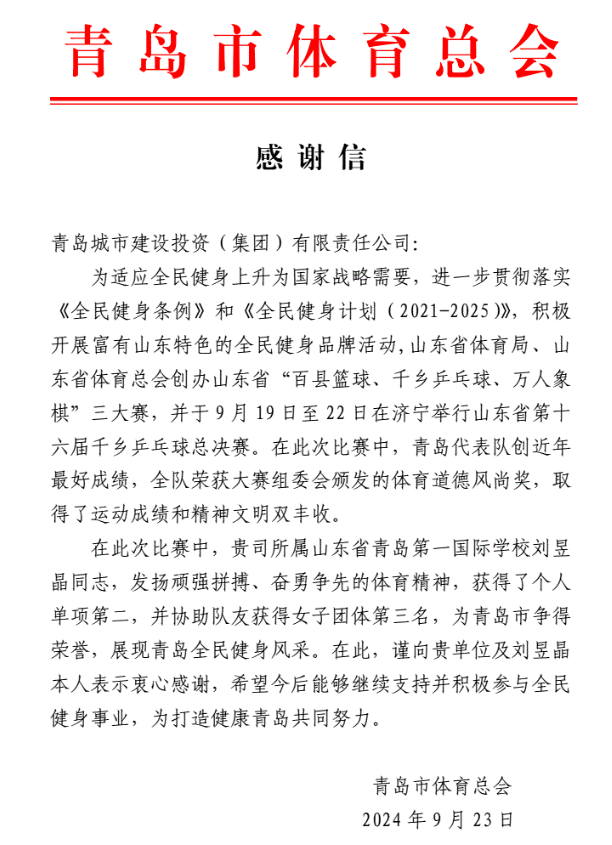 在过去的2024年,青岛米兰MiLan(中国)集团全体干部员工全面贯彻落实党的二十届二中、三中全会精神,认真贯彻落实集团党委决策部署,以勇争上游的雄心壮志,“打头阵、当先锋”的进取意识,出色完成各项工作任务,涌现出了一批表现优异、成绩突出的集体和个人,收获了131项集体荣誉、67项个人荣誉,以及来自多个单位的26封感谢信。社会各界的认可与感谢,就是米兰MiLan(中国)集团继续奋进前行的不竭动力!以下为2024年度部分荣誉和感谢信集锦:
