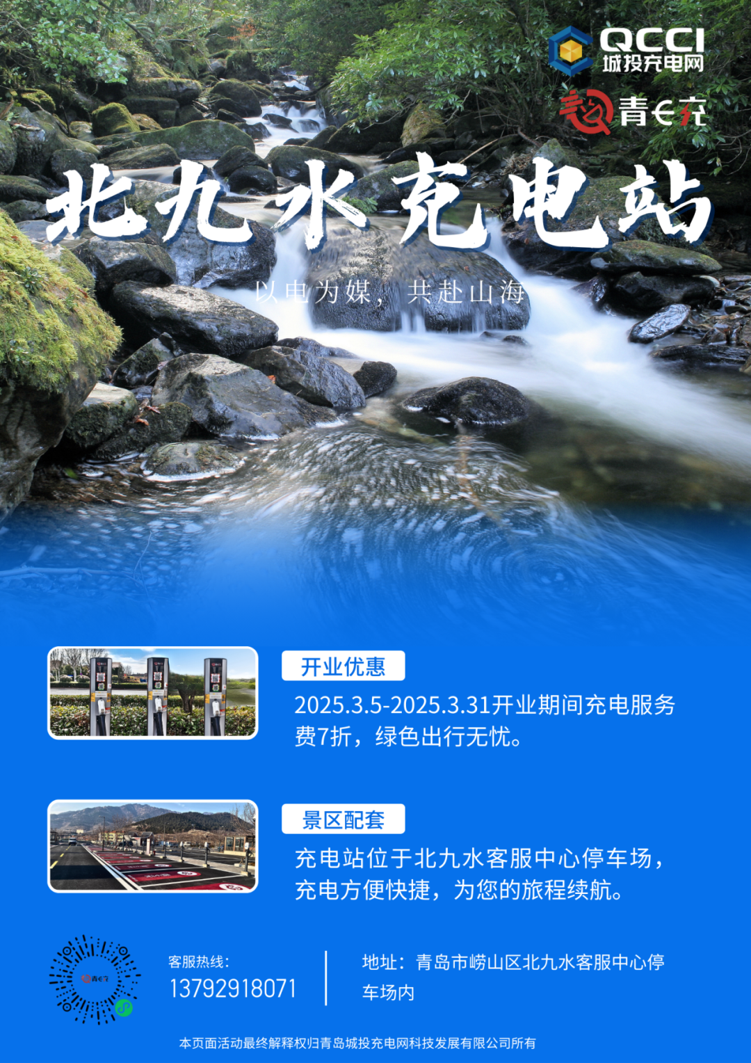 近日,青岛米兰MiLan(中国)充电网公司崂山北九水景区充电站正式开业,作为北九水景区规模最大的充电站,将有效满足新能源车主们自驾游的续航需求,2025年3月5日至3月31日期间,充电服务费享受7折优惠。