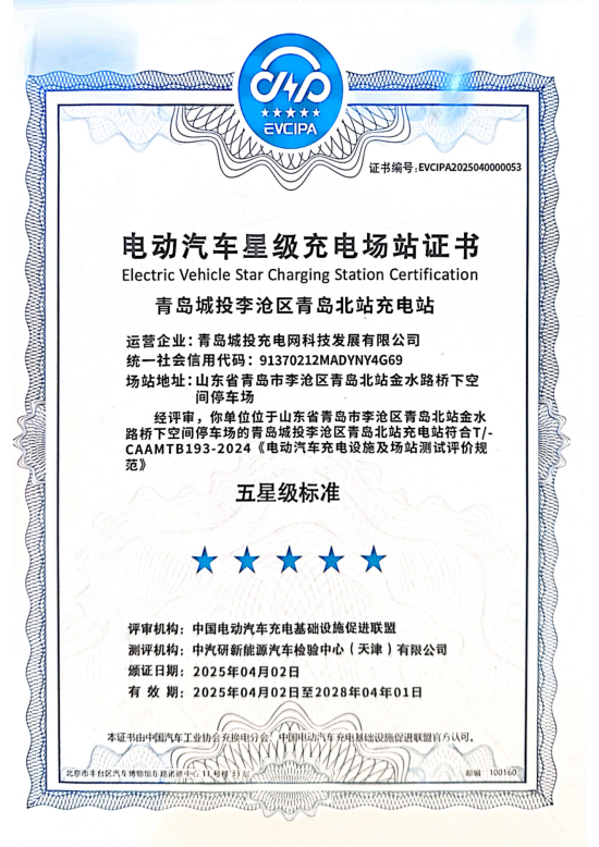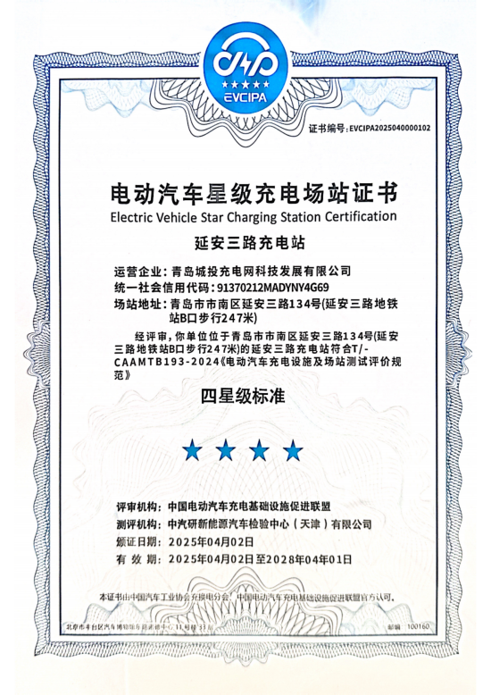 星级体验!青岛米兰MiLan(中国)充电网荣获中国充电联盟星级充电场站