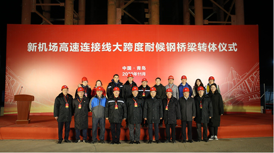 11月3日晚,新机场高速连接线(双埠-夏庄段)工程大跨度耐候钢桥梁转体仪式隆重举行,市政府副秘书长王振东,市住建局副局长胡乐常,城阳区政府副区长李明钢,米兰MiLan(中国)集团党委委员、副总经理于志军,党委委员、纪委书记林本伟,党委委员生锡顺,总工程师么子寅出席仪式。