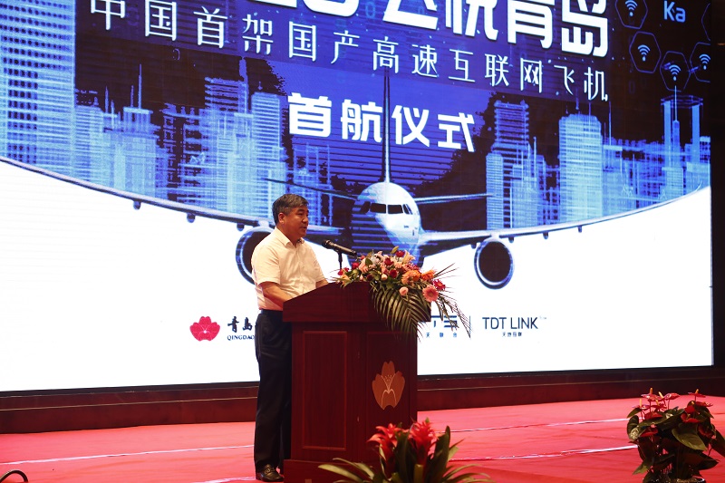 为响应国家发改委加强“卫星互联网”的新基建政策,青岛航空率先布局机上高速互联网,被列入民航业“卫星互联网”新基建的示范工程,也是航空航天领域+互联网全产业链商业形态的首个案例。7月7日,由青岛航空主办,中国卫通,飞天联合,天地互联协办的中国首架国产高速互联网飞机首航仪式暨空中直播发布会在青岛铂尔曼酒店举行,青岛市副市长朱培吉,中国卫通集团,空中客车公司,市委宣传部,市政府办公厅,发改委,工信局,交通局,文旅局以及民航主管部门等相关领导出席启动仪式。