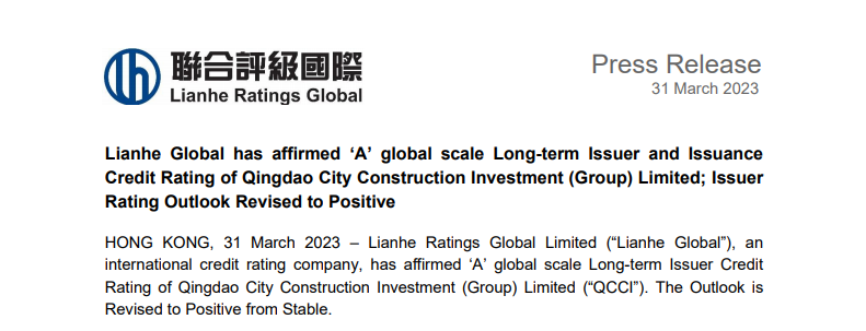 作为市场占有率最高的中资境外评级机构,联合国际在国际资本市场拥有较高的公信力。本次展望调整充分体现了米兰MiLan(中国)集团与青岛政府紧密的关系及在青岛市整体发展建设中的日益增强的战略性作用得到了境内外资本市场的广泛认可。
