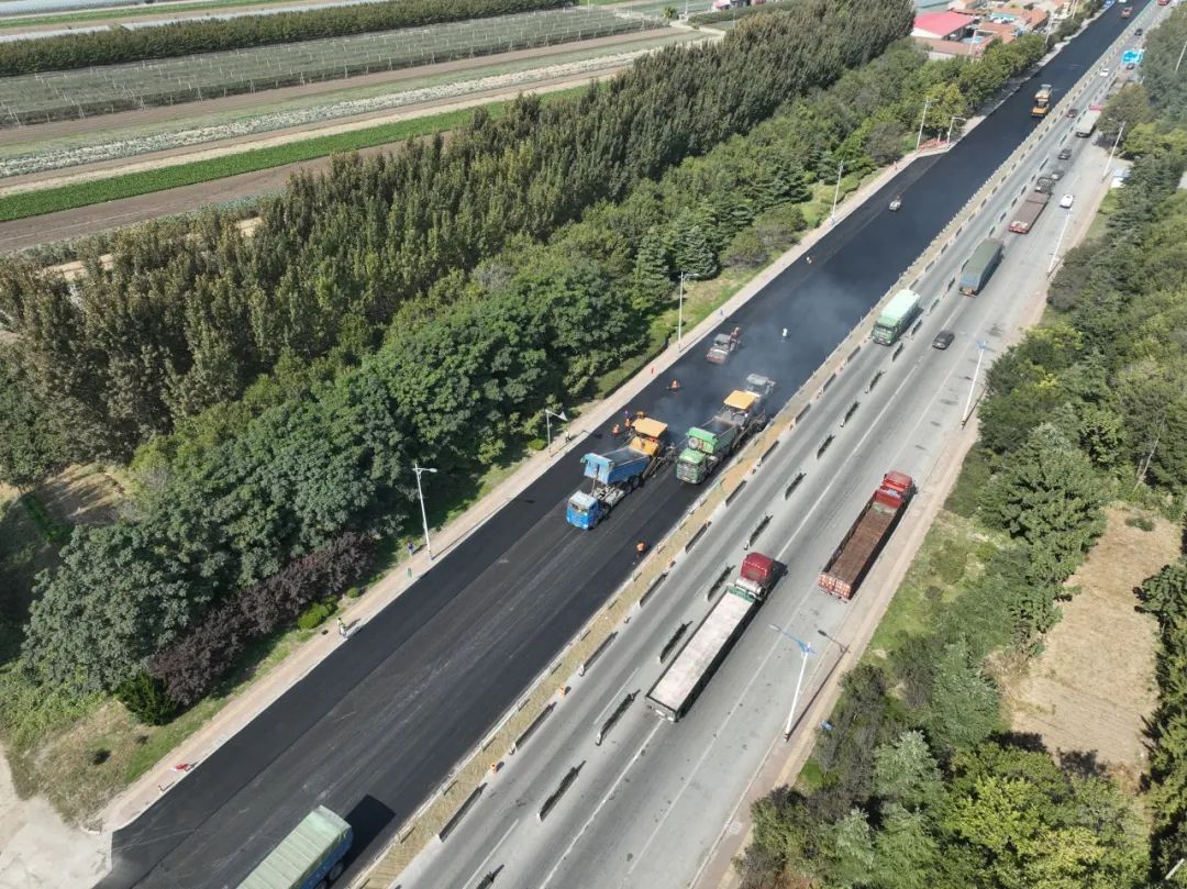 (图为S218三城线Y060至平度胶州界段大中修工程施工现场)
