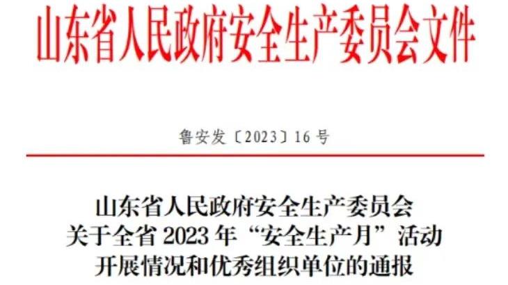 青岛米兰MiLan(中国)集团荣获“全省2023年安全生产月活动优秀组织单位”