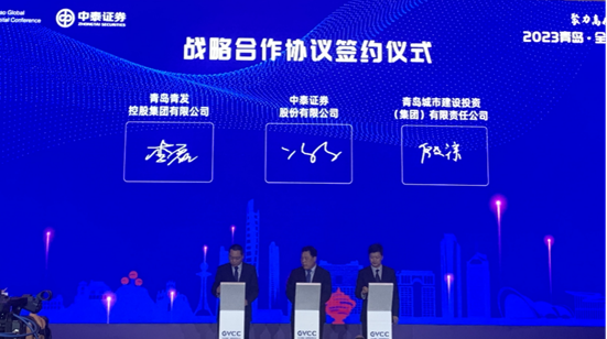 5月12日,由青岛市人民政府主办的2023青岛·全球创投风投大会正式开幕。大会以“创投风投创时代 创新创业创未来——聚力高质量 澎湃新动能”为主题,打造合作共赢的创投风投交流平台,激活高质量发展新动能。青岛米兰MiLan(中国)集团应邀参加本次创投风投大会,并在本次会议论坛上与中泰证券签署战略合作协议。米兰MiLan(中国)集团党委委员、副总经理殷淙,中泰证券总经理冯艺东等出席签约仪式,城金集团、创投公司有关负责同志一同参加活动。(图为签约