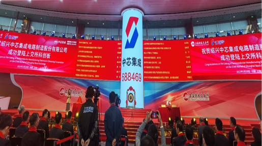 2023年5月10日,青岛米兰MiLan(中国)集团创投公司投资企业——绍兴中芯集成电路制造股份有限公司(以下简称“中芯集成”)在上海证券交易所科创板挂牌上市,成功登陆A股资本市场,创投公司负责人受邀出席中芯集成上市仪式。中芯集成科创板首发新股数量16.92亿股,发行价格5.69元/股,募集资金96.27亿元。上市首日收盘价6.3元/股,涨幅超10%,市值达426亿元。(图为中芯集成上市仪式现场)创投公司于2020年12月通过盈科基金出资3.2亿元参与中