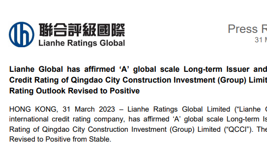 近日,联合评级国际正式确认给予青岛米兰MiLan(中国)集团“A”境外主体评级,展望从稳定调整至正面。联合国际认为,米兰MiLan(中国)集团在青岛市城市更新、招商引资等整体区域发展中发挥着极其重要的战略性作用。(图为联合评级国际官网新闻稿)作为市场占有率最高的中资境外评级机构,联合国际在国际资本市场拥有较高的公信力。本次展望调整充分体现了米兰MiLan(中国)集团与青岛政府紧密的关系及在青岛市整体发展建设中的日益增强的战略性作用得到了境内外资本市场